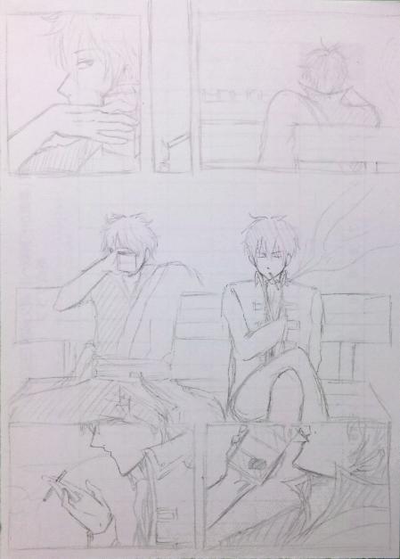 いちご牛乳の立てる水音を聞いたのかそうでないのか、沈黙を破ったのは煙草を銜えている方だった。短い単語だけを口にしてから、思い出したように煙草を唇から離す。ふう、と口から漏れた息は真っ白く染まっており、銀髪の男は思わず顔を顰めた。